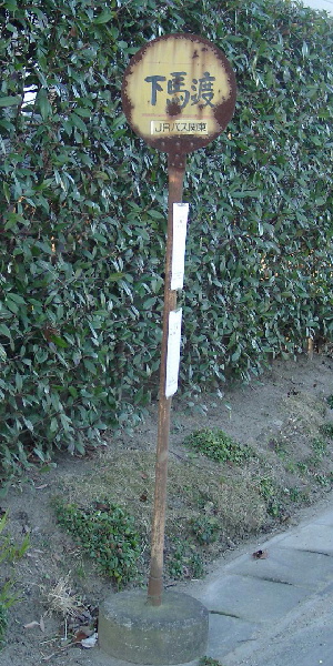 土浦駅から旧稲敷郡桜川村(現・稲敷市)浮島まで通学時間帯のみ運行される路線がありました。土日・祝日運休で、土浦行き朝一本、浮島行き夕方一本だけの運行でした。JR化されて15年以上経っての撮影ですが、停留所の標柱は国鉄仕様の黄色い物がそのまま使われていました。